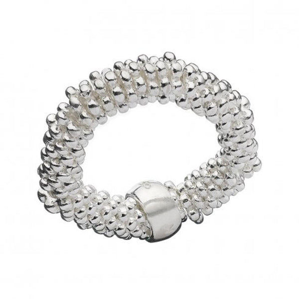 This is a ladies cocktail ring from Links of London. From the Effervescence, this ring is made from sterling silver and features star shaped beads throughout on a flexible band. This ring is ideal for a variety of occasions.