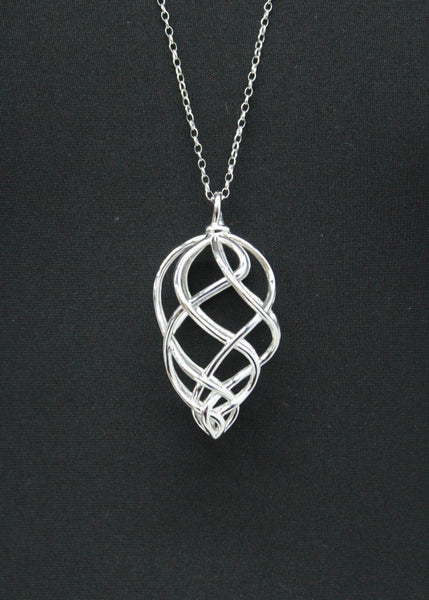 This is a listing for a ladies polished sterling silver woven necklace from Links of London. It features a large drop pendant 2" in length on an elegant fine link chain, both in stunning 925 hallmarked silver. The perfect pick for many occasions.