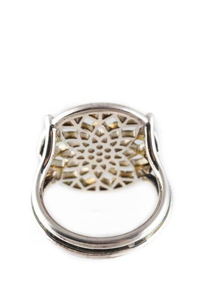This is a ladies cocktail ring from Links of London. From the Timeless collection, this ring is made from sterling silver and features a cut out coin detail. This ring is ideal for a variety of occasions.